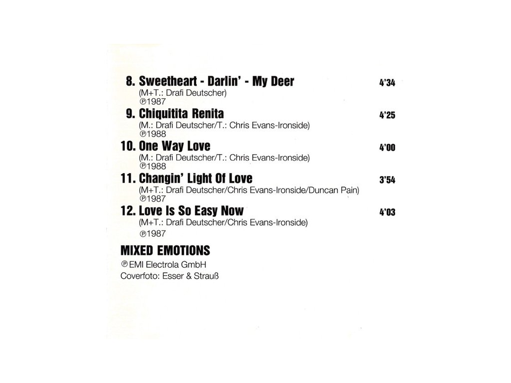 1991 | Side by Side (jako New Mixed Emotions) | Vydáno, když Drafi pokračoval s novým partnerem. |