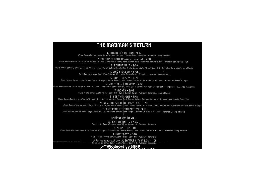 album: Snap - The Madman´s Return (The 2nd Album) (Bonus Tracks 3rd Edition) (1992)